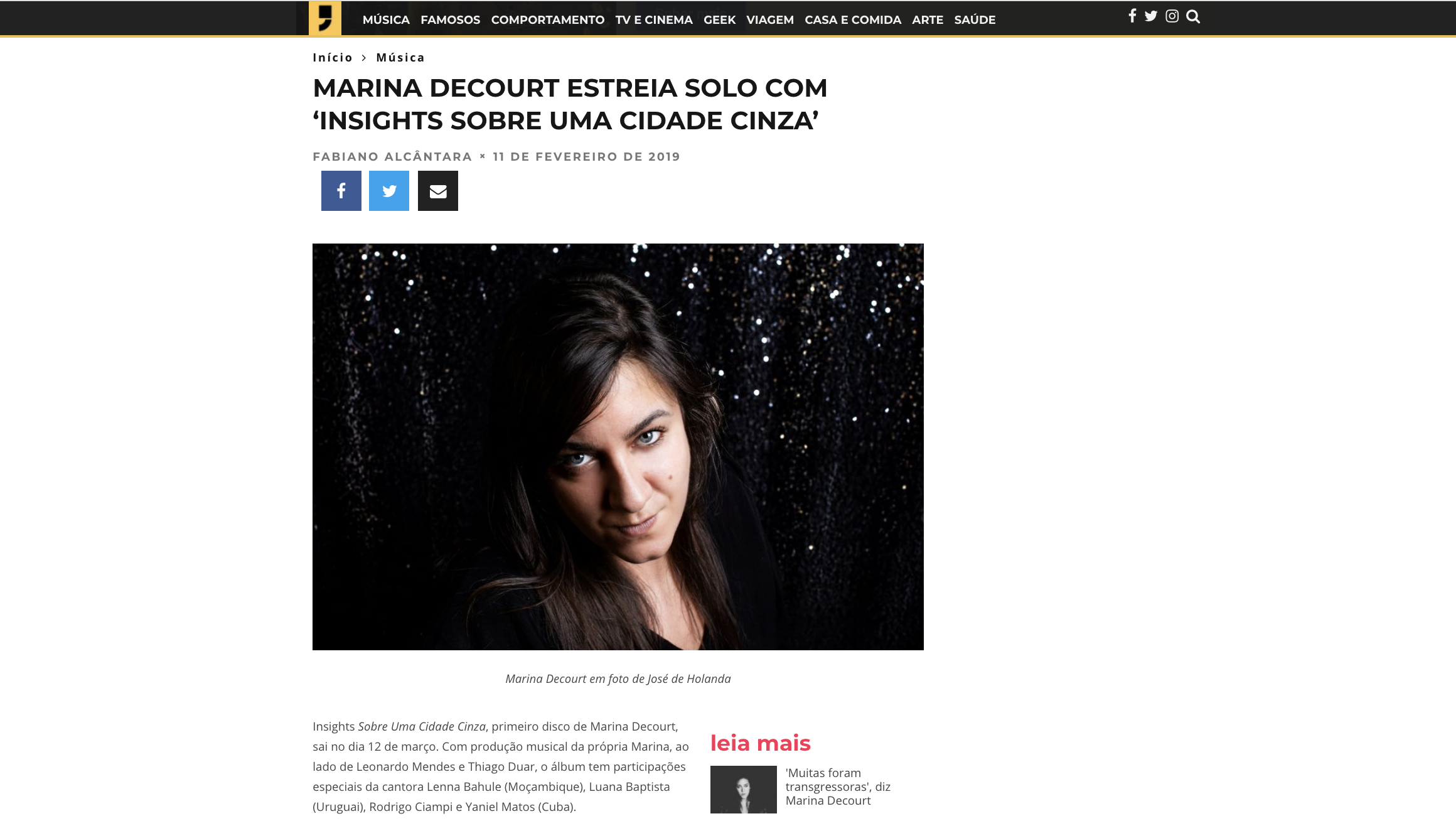 News Entrevista de Marina Decourt para Music Non Stop | UOL>> LEIA MAIS Lançamento do disco ‘Insights Sobre Uma Cidade Cinza’ >> LEIA MAIS Lançamento do single ‘Bye Bye Babylon’ e entrevista com Marina Decourt >> LEIA MAIS ‘Da Fotografia para a Música’ >> LEIA MAIS Lançamento do clipe ‘Dentro Desse Ser’>> LEIA MAIS Lançamento single ‘Setembro’>> LEIA MAIS Marina Decourt é a cantora e compositora da música de abertura da série ‘A Garota da Moto’ SBT/FOX>> LEIA MAIS